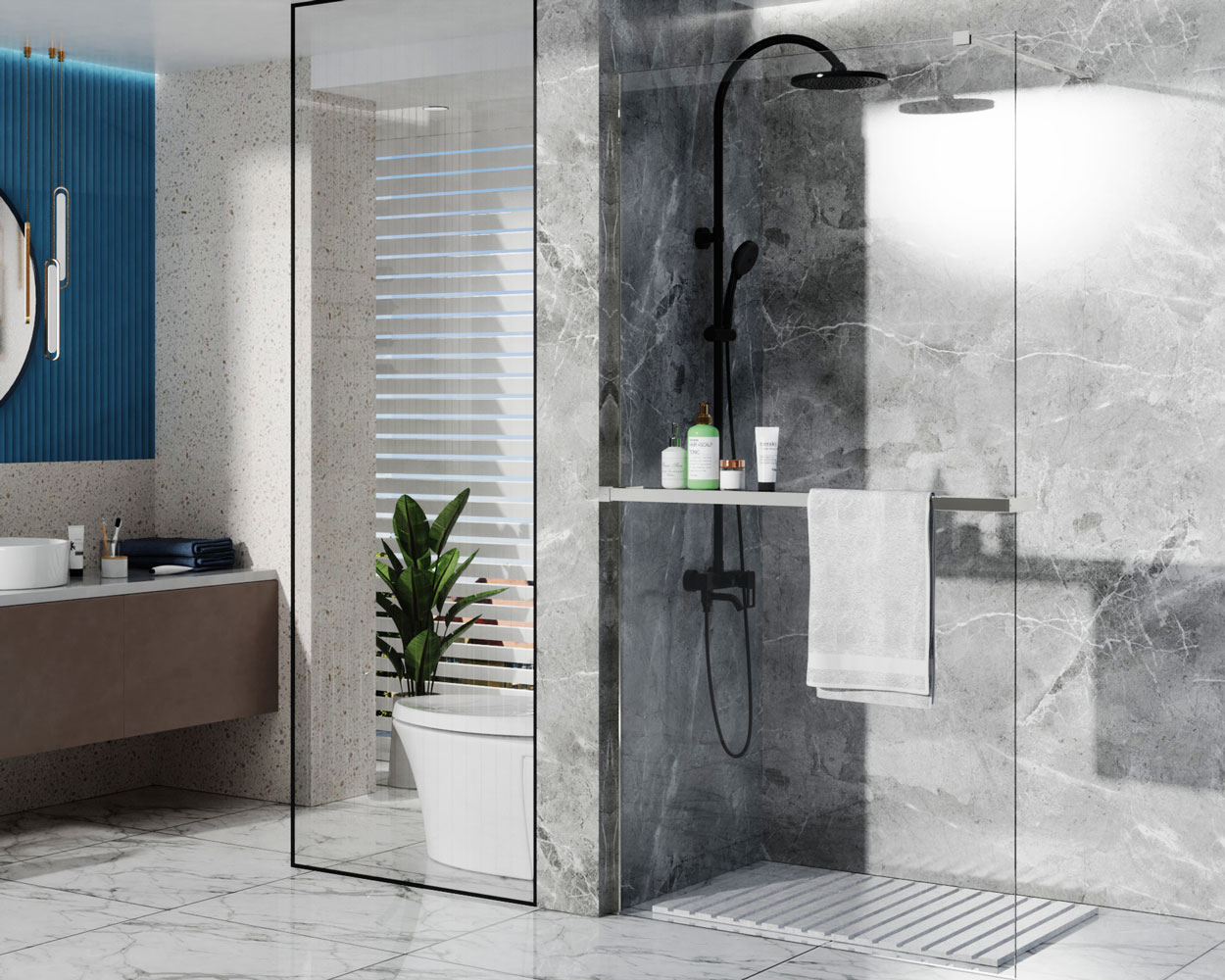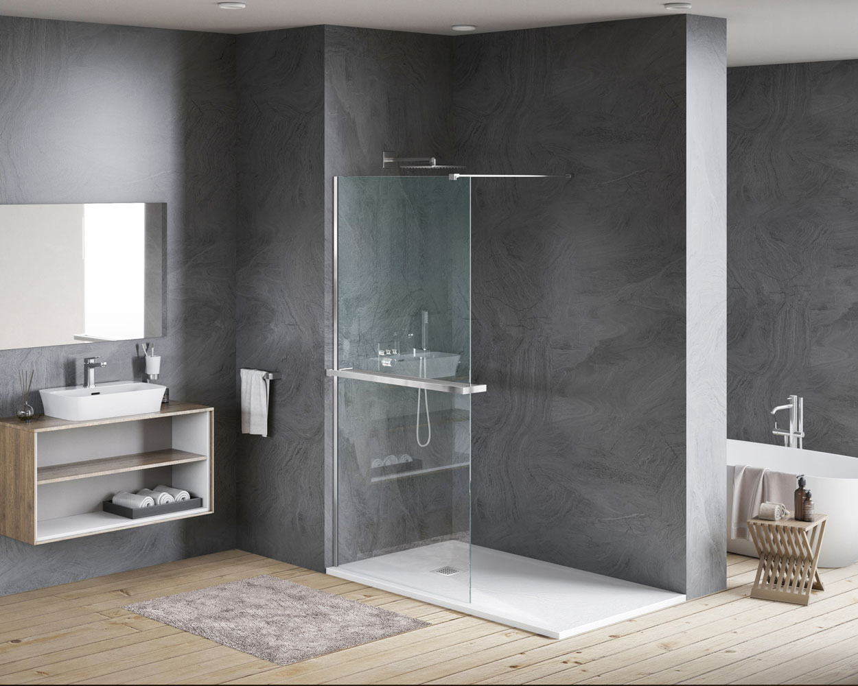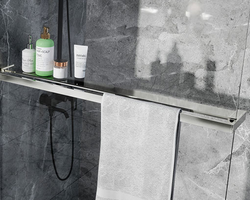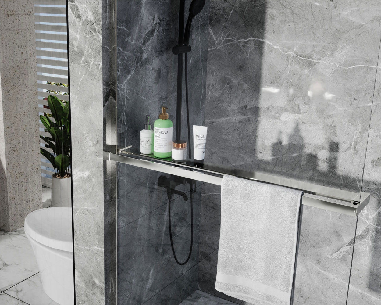Walk-in polc és törölközőtartó 90 cm, króm,7,5 cm széles,