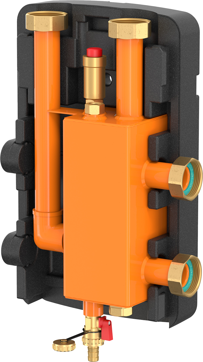 Keringető szivattyúval kiegészítve, ferde csatlakozóval; beépített szennyeződésleválasztó Flamco Clean Smart; két gömbcsap (a visszatérő vezeték oldalán kézzel állítható visszaáramlás-korlátozóval); az érzékelő rögzítése az áramlási vezetékben legyen; a gömbcsap fogantyújába integrált két érintkező hőmérővel, 3 utas T-keverő fokozatmentesen állítható bypass-szal; szervomotorral, áramlási vonal a jobb oldalon (nem cserélhető); tervezés EPP szigetelés; beleértve a fali konzolt is.