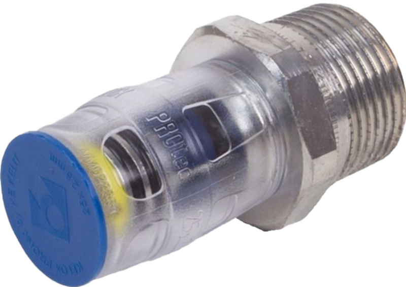 Gyorscsatlakozós átkötő külső menettel, kóccal való tömítéshez, PPSU-ból, betoláskor kattanó hangot adó, átlátszó poliamid gyorscsatlakozós hüvellyel, valamint haptikus és optikai betolásjelzővel, O-gyűrűkkel, kihúzásgátlókkal és védőgyűrűvel a biztos betolásértNE használjon folyékony tömítőanyagot vagy tömítőszálakat!