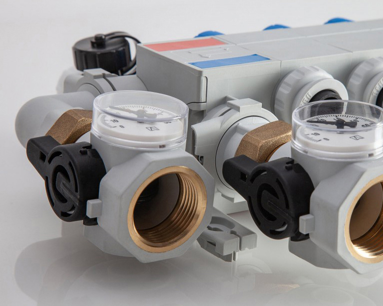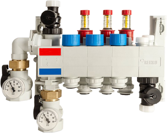 A fűtővíz elosztása és beszabályozása felületfűtés/-hűtés rendszerekben.