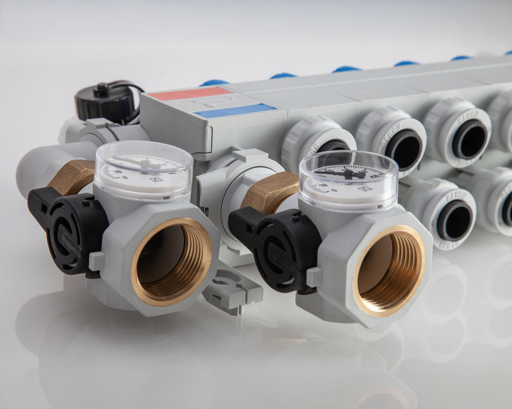 A fűtővíz elosztása és beszabályozása felületfűtés/-hűtés rendszerekben.