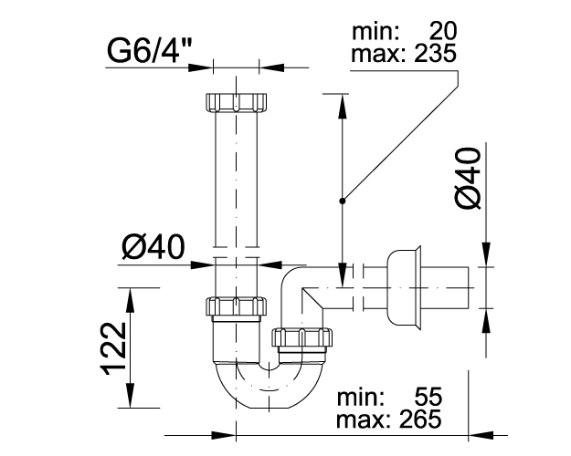 Styron Csőszifon leeresztőszelep nélkül, 40mm-es elfolyással