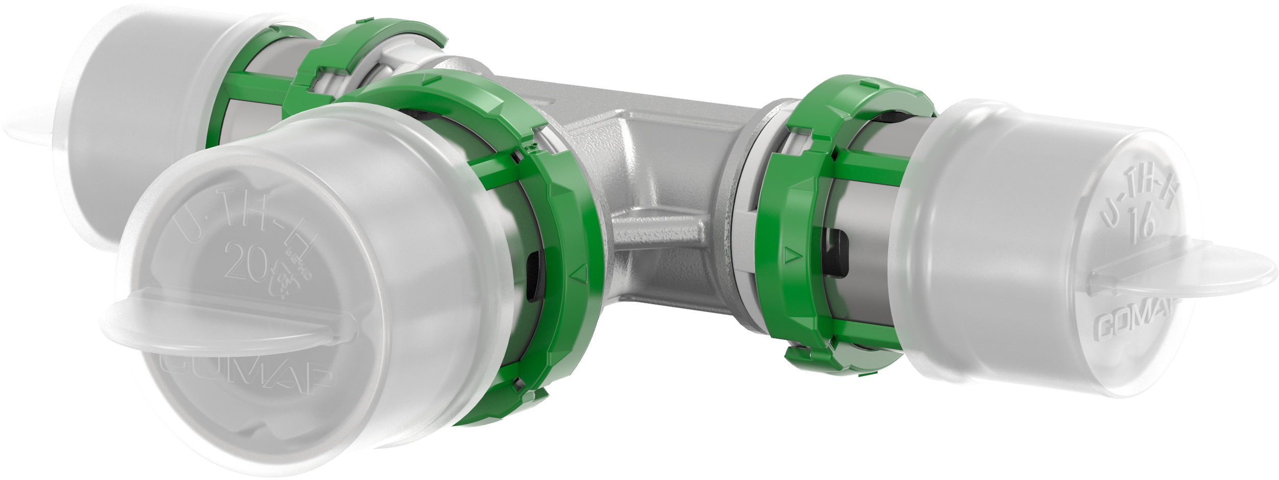Szintetikus szerelvények választéka 16 és 63 mm között.