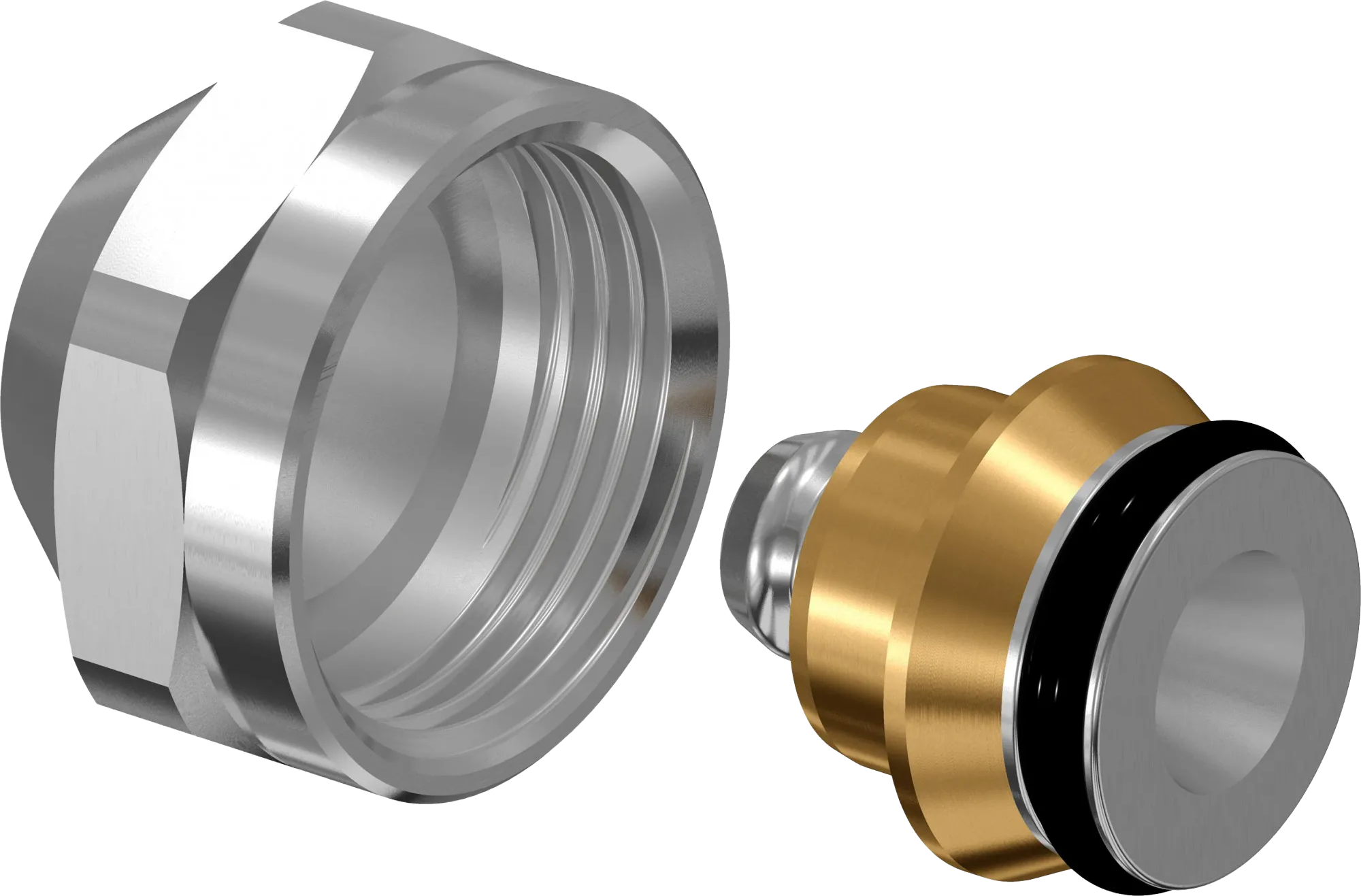 Kompressziós adapter, csatlakozó anya és belső hüvely.