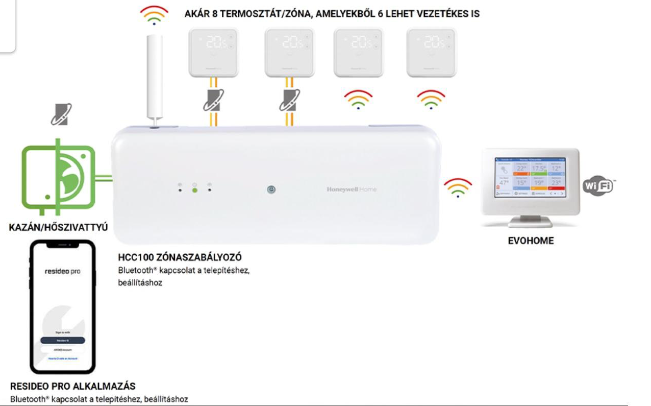 Többzónás vezérlő padló alatti kényelmi alkalmazásokhoz vezetékes és/vagy vezeték nélküli zónákkal a fűtés és/vagy hűtés vezérléséhez.
