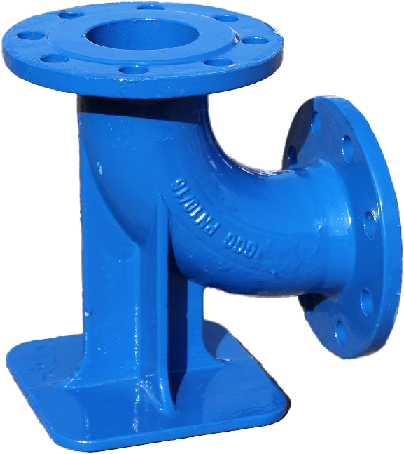 QN öntöttvas kétkarimás talpas könyök DN100