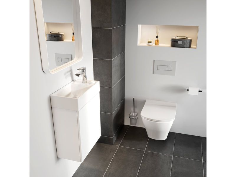 Az egységes megoldás és a fürdőszoba design összhangjának érdekében javasoljuk a kombinációt a Flat csaptelepekkel.