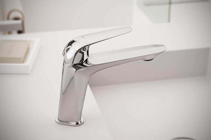 Magas mosdócsaptelep, amely a modern formákat tükrözi és bármelyik fürdőszobába illeszkedik.