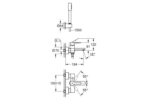 Grohe Lineare kádcsaptelep fali kivitel, fém fogantyú