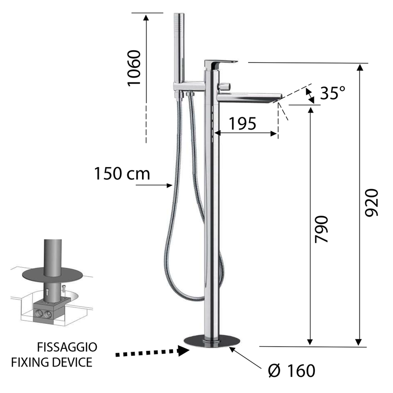 Csaptelep test magassága (zárt állapotnál): 92 cm