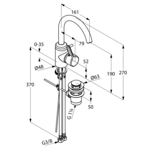 Kludi Bingo Star oldalkaros, magasított mosdó csaptelep, automata leeresztővel
