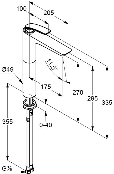 Kludi Balance magasított, egykaros mosdó csaptelep leeresztő nélkül, fekete