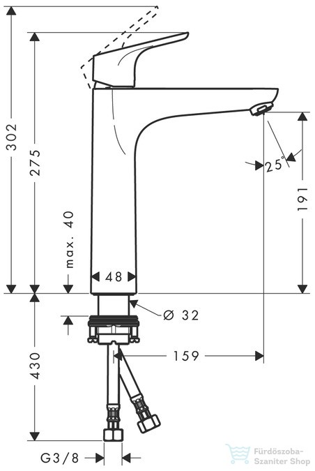 Hansgrohe Focus 190 egykaros magasított mosdó csaptelep, leeresztő nélkül