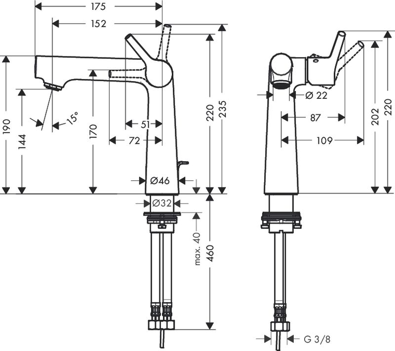 Hansgrohe Talis S 140 egykaros mosdó csaptelep, automata lefolyógarnitúrával