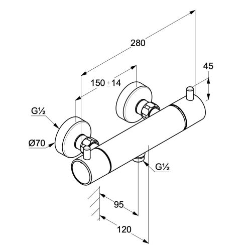 Kludi Bozz termosztátos zuhanycsaptelep, falra szerelhető kivitel