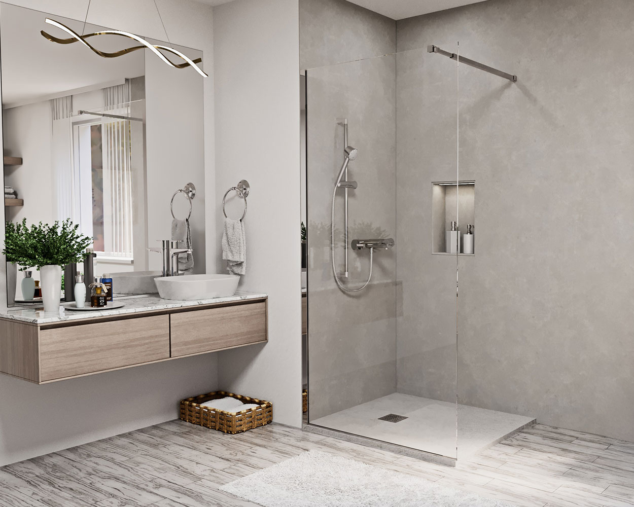 Niagara Wellness Frida Walk-in zuhanyfal 8 mm-es biztonsági üveg.