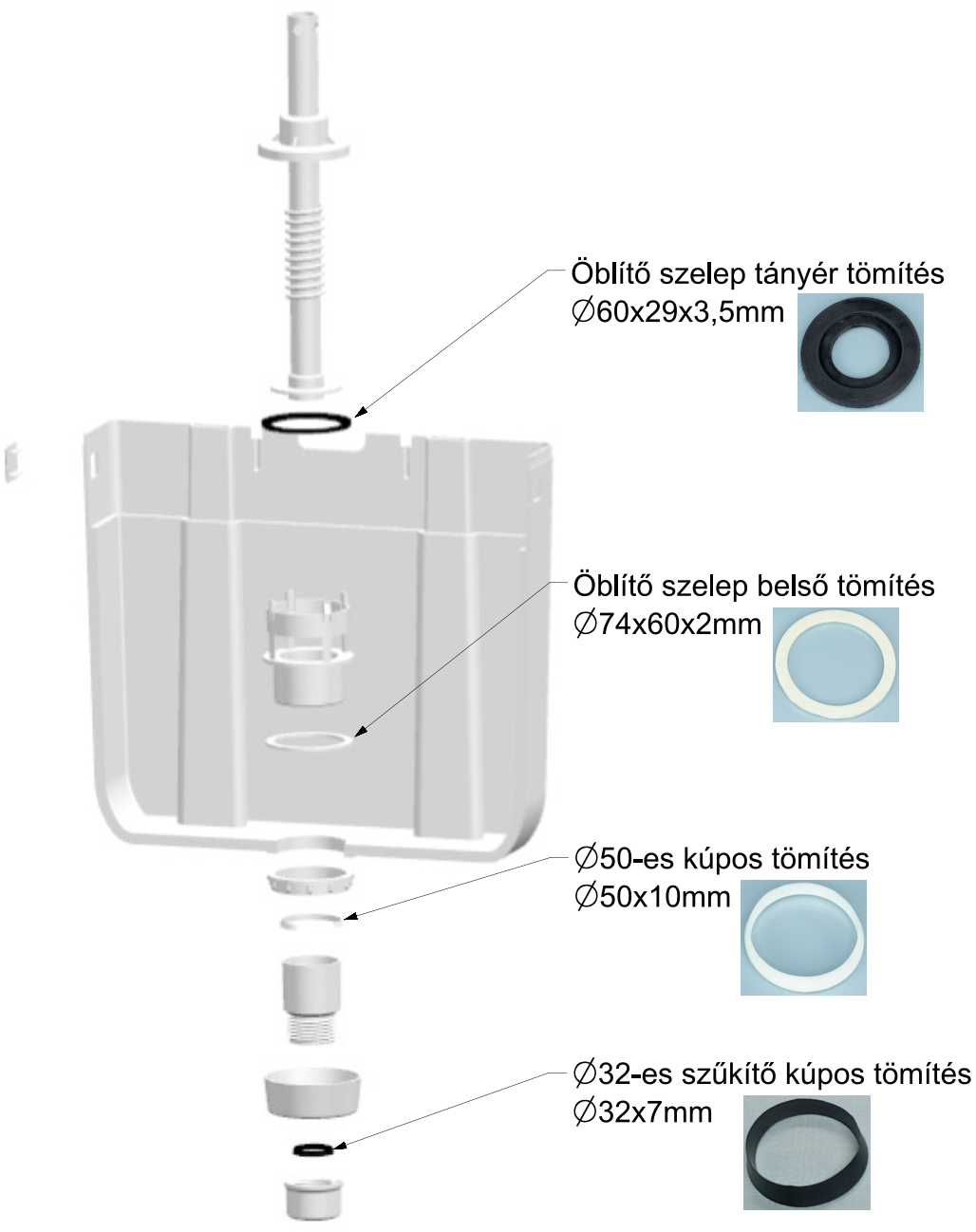- az öblítőtartály fő szerkezeti elemeinek (töltő és öblítő szelep) illetve valamennyi részegységének alkatrész ellátása hosszú távon biztosított