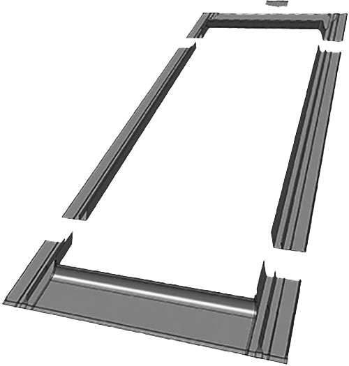 A burkolókeret négy részből áll (alsó, két oldalsó és felső részből). Az alsó rész egy elasztikus kötény, alján ragasztócsíkkal, ami biztos rögzítést ad a tetőfedő anyaghoz. A fő részeken kívül páraelvezető csatornával is rendelkezik, a tetőfólián képződő páralecsapódásból származó víz elvezetésére. Az oldalsó tömítőszivacs ékek megakadályozzák a por, falevél és hó bejutását a tetőszerkezetbe.