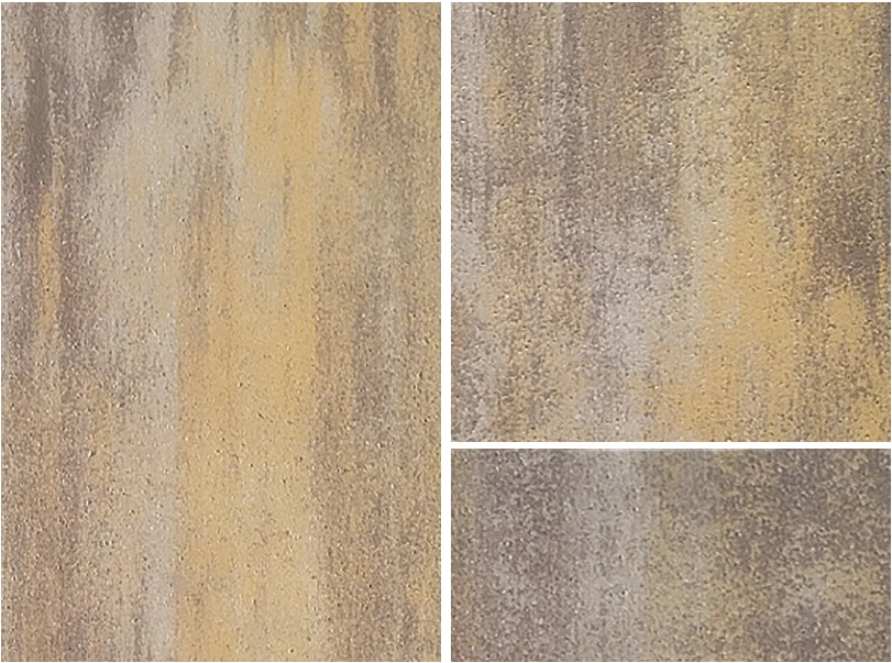 Izgalmasan tagolt, borostyán színű letisztult formavilágú, élénk, egyedi hatású melírozott színekben elérhető, kombi térkő, a modern stílus kedvelőinek.