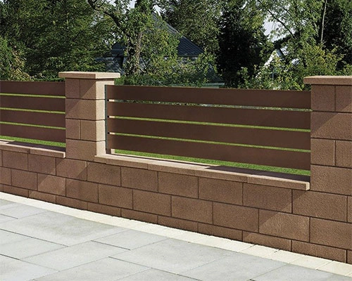 Mokka színű fedlap, klasszikus stílusú, nyersbeton felületű, egyszerűen építhető kerítésrendszer, amely letisztult eleganciájával minden építészeti stílushoz illik, és mindenkit meggyőz.