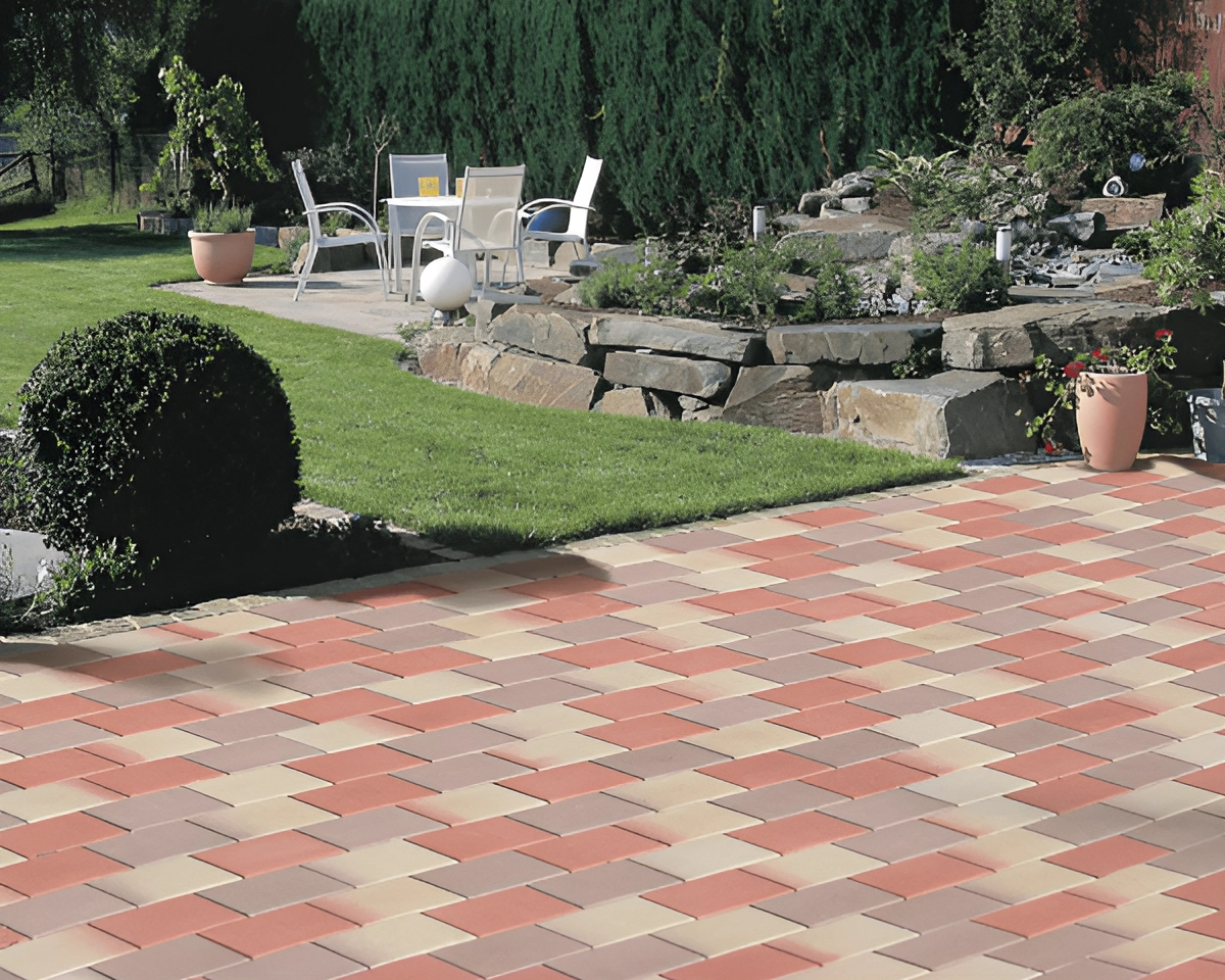 Egyszerűen lerakható, klasszikus stílusú, őszilomb színű, kvarchomokkal kevert felületű térkő, amely megnyugtatóan kellemes színeivel különleges látványt nyújt a kertben, de akár köztereken is.