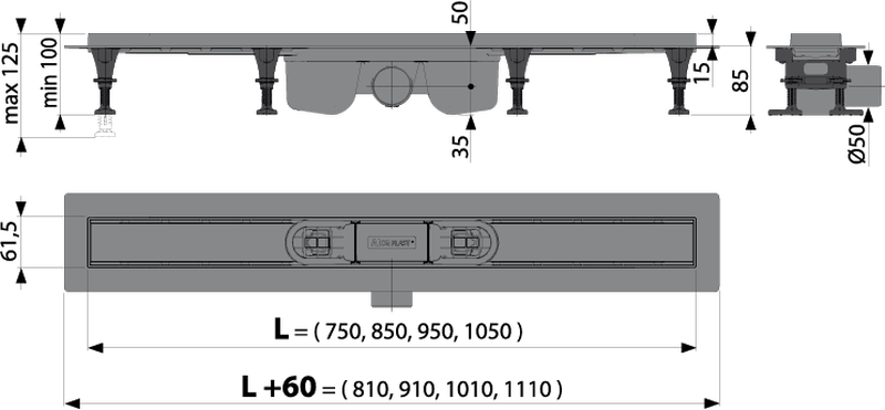 Alca APZ12 Optimal műanyag Zuhanyfolyóka rács nélkül (750 mm)
