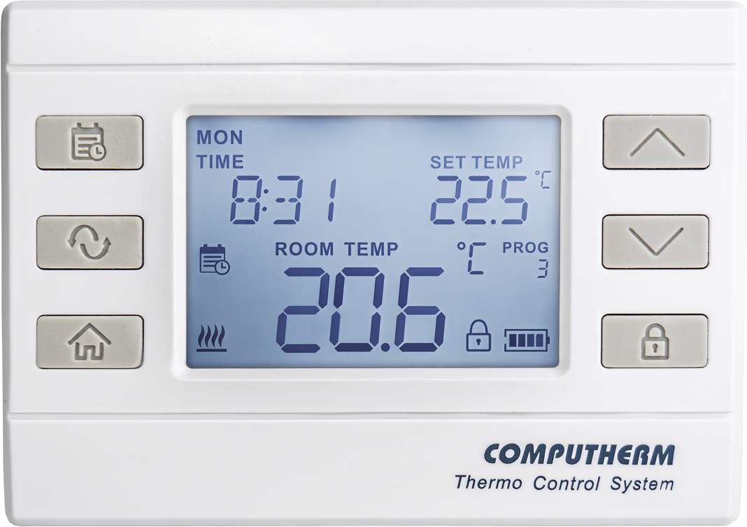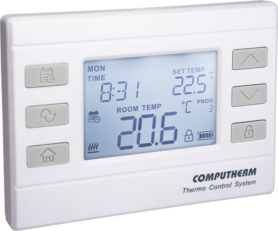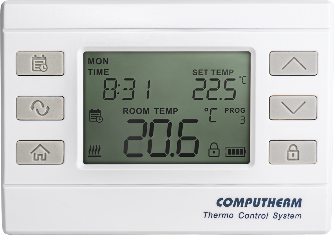 A COMPUTHERM Q72 szobatermosztát segítségével a hét minden napjára külön-külön hőmérsékletprogram készíthető. Naponta 1 rögzített és 10 szabadon választott kapcsolási időpont beállítására van lehetőség, melyek mindegyikéhez tetszőleges hőmérséklet választható.