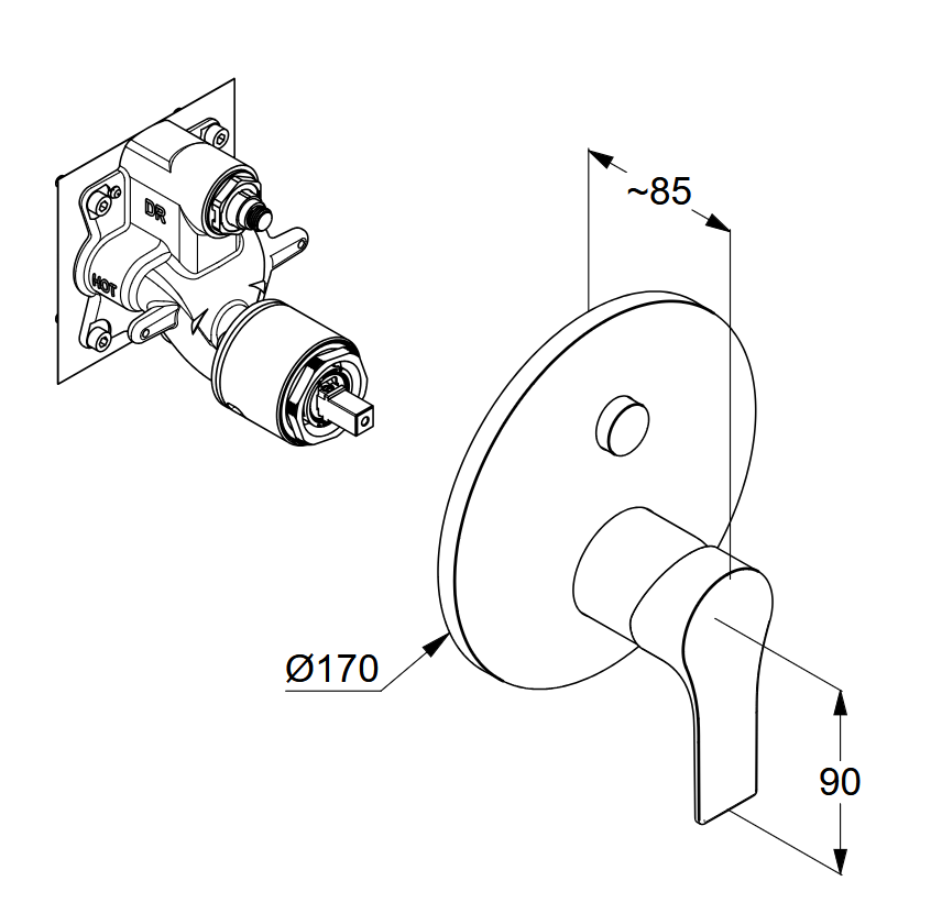 KLUDI-ZENTA falsík alatti kád/zuhanycsap Push