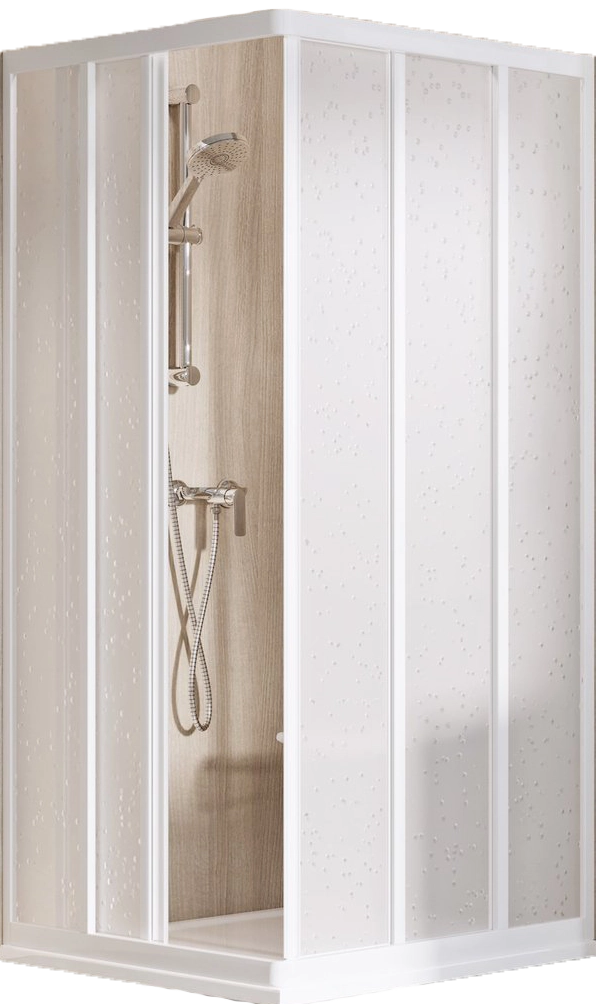 Egy teljes zuhanykabin kialakításához két darab ASRV3 tolóajtó szükséges, a sarokelem minden csomagolás tartozéka. Mindkét rész különböző méretének kombinációjával négyzet vagy téglalap alapú zuhanykabint alakíthatunk ki (pl.: 75 x 90 cm, 80 x 90 cm és így tovább).