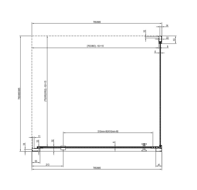 Két NPSS fix fal és egy zuhanyajtó kombinációjával „U” alakú zuhanyzó hozható létre.