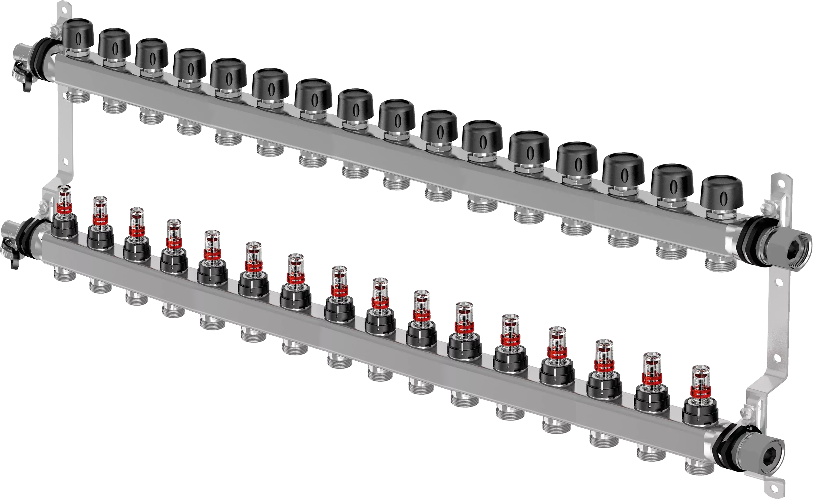 - Ellátás áramlásmérővel a kiegyenlítéshez és elzáráshoz