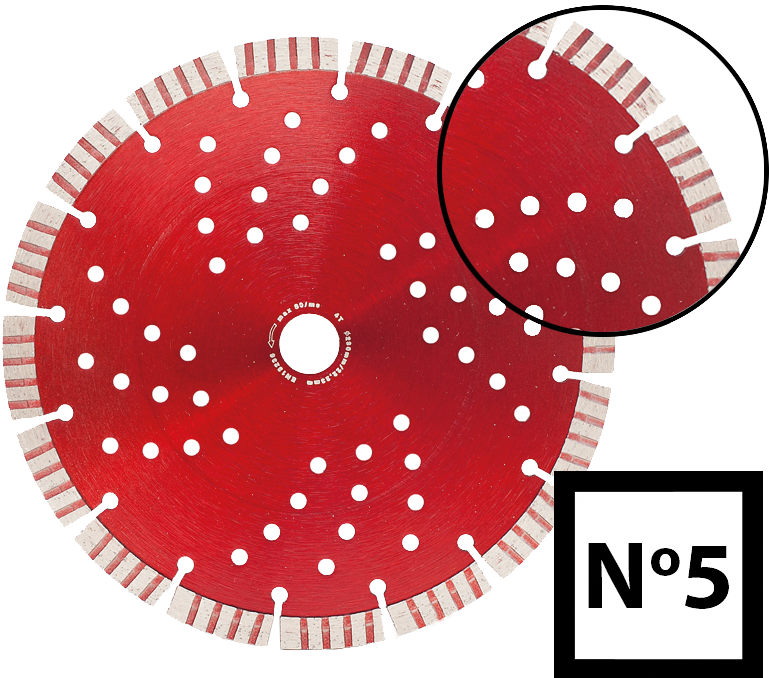 Univerzális gyémánttárcsa általános építőipari használatra, tégla, beton, térkő és más építőipari anyag vágásához- speciális fogazott szegmensek, turbó vágóél- hűtési lyukak az alaplapon- szegmensmagasság: 12 mm