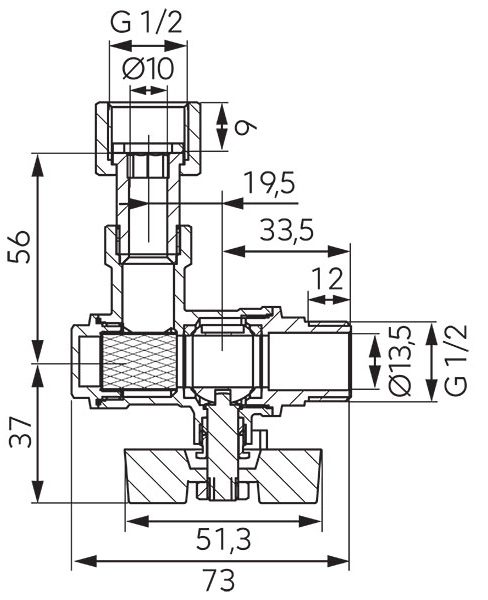 Ferro Sarok golyóscsap, a csaptest alsó részére helyezett pillangókarral, KB félhollanderes menetcsatlakozással, csatlakozás: 1/2”