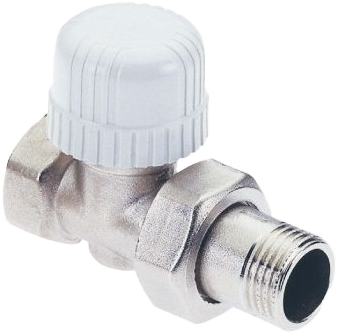 Egyenes, termosztatikus radiátorszelep szorítógyűrűs, szivárgás rezisztens csatlakozóval ellátva.