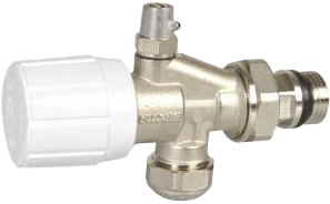 Kézi/termosztatikus,átkötőcsöves radiátorszelep csatlakozóval,beépített légtelenítővel.