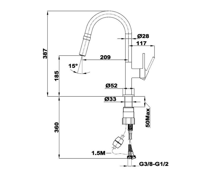Junior Evo X mosogató csaptelep kihúzható zuhanyfejjel