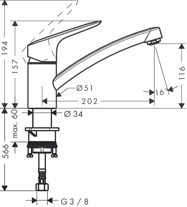 Hansgrohe Logis M31 egykaros konyhai csaptelep 120, nyílt rendszerű vízmelegítőkhöz