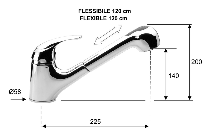 SAPHO Sally egykaros mosogató csaptelep kihúzható zuhanyfejjel, króm