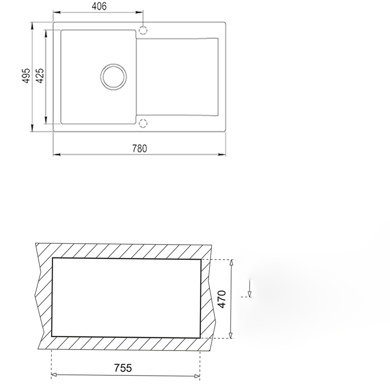 Anyag: gránitőrlemény. Rögzítőkarmok mellékelve a csomagolásban