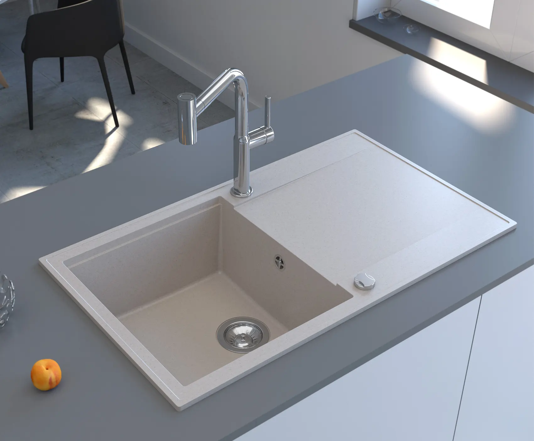 Mofém Zenit 86 1B1D 1 medencés, csepptálcás gránit mosogatótálca, bézs 860x500