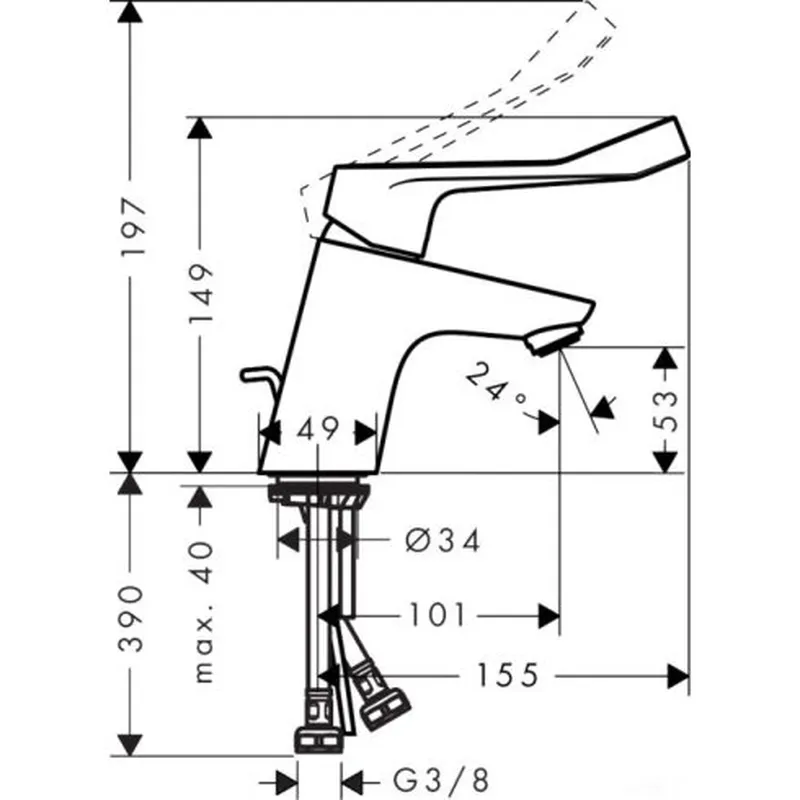 Hansgrohe Focus Care 70 orvosi mosdó csaptelep extra hosszú fogantyúval