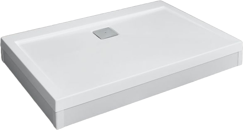 Zuhanytálca lábbal és peremrögzítő szettel. Előlap fogadásához előkészítve. Külön vásárolható fehér vagy króm színű előlap.