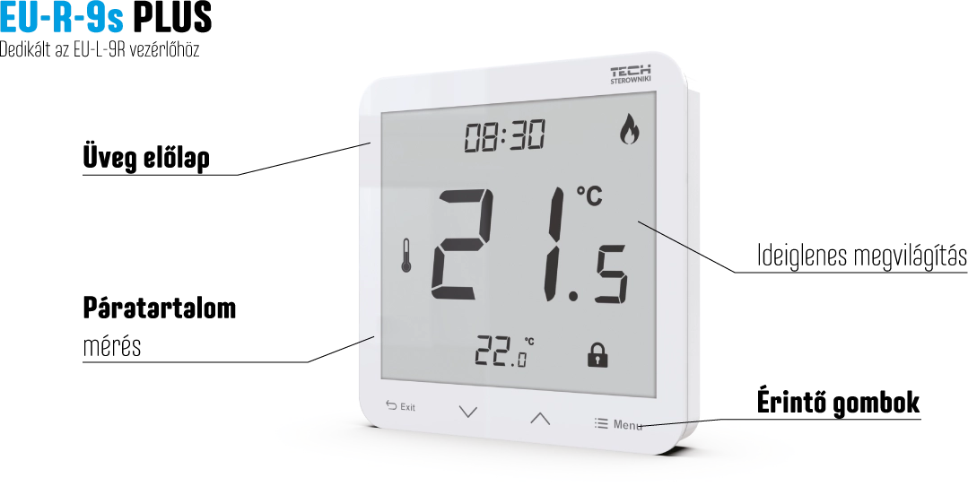 Tech EU-R-9S PLUS vezetékes termosztát TECH EU-L9R vezérlőhöz
