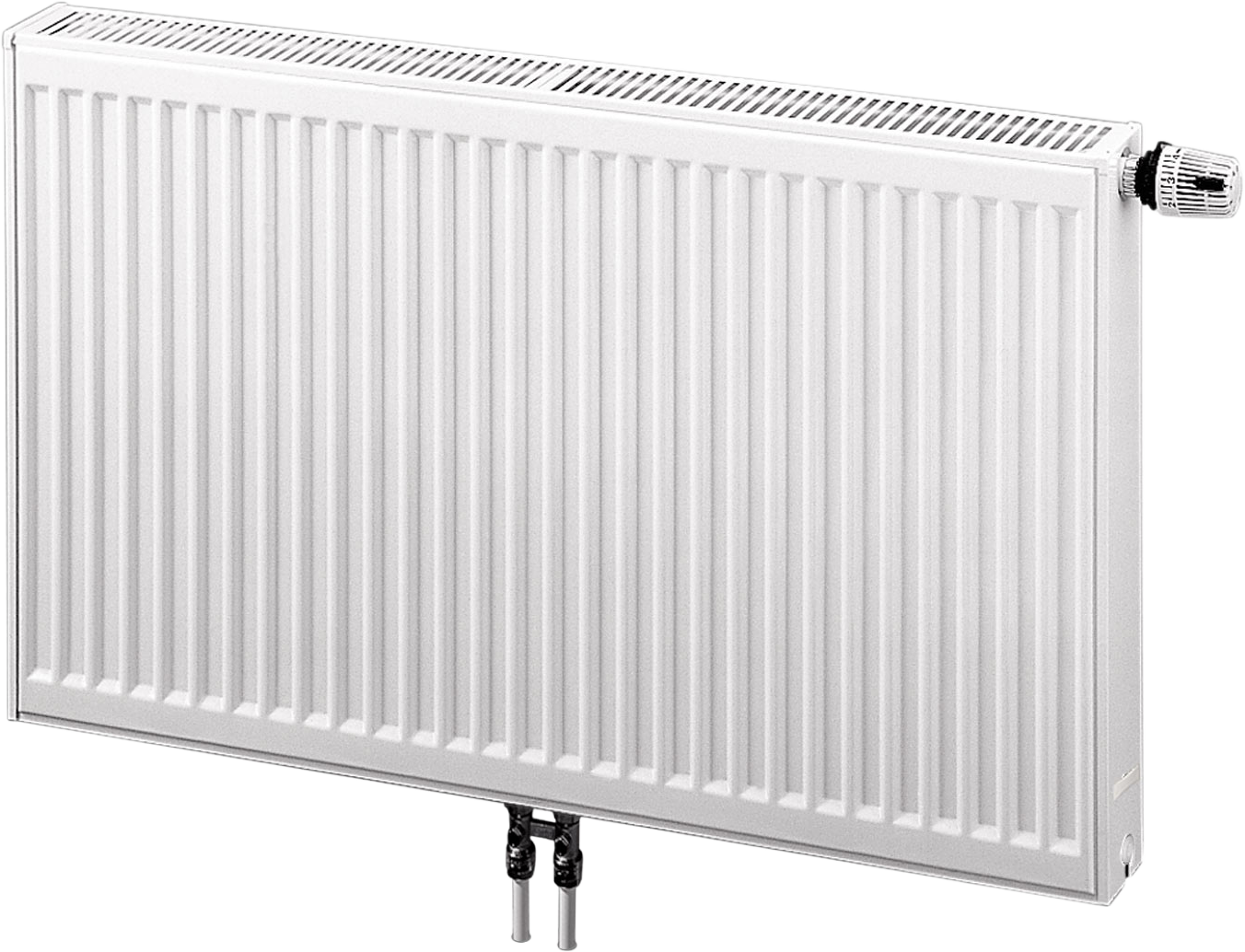 Lemez radiátorok konvekciós elemekkel és beépített termosztátikus szeleppel, oldalfelület motorháztetőkkel, felső felület rácsgal borítva. Beépített szerelvények lehetővé teszik, hogy a radiátort alulról és oldalról is csatlakoztatd. Két alsó csatlakozónyílás a padlóról érkező áramellátáshoz, valamint négy oldalsó csatlakozónyílás a radiátor minden sarkában.