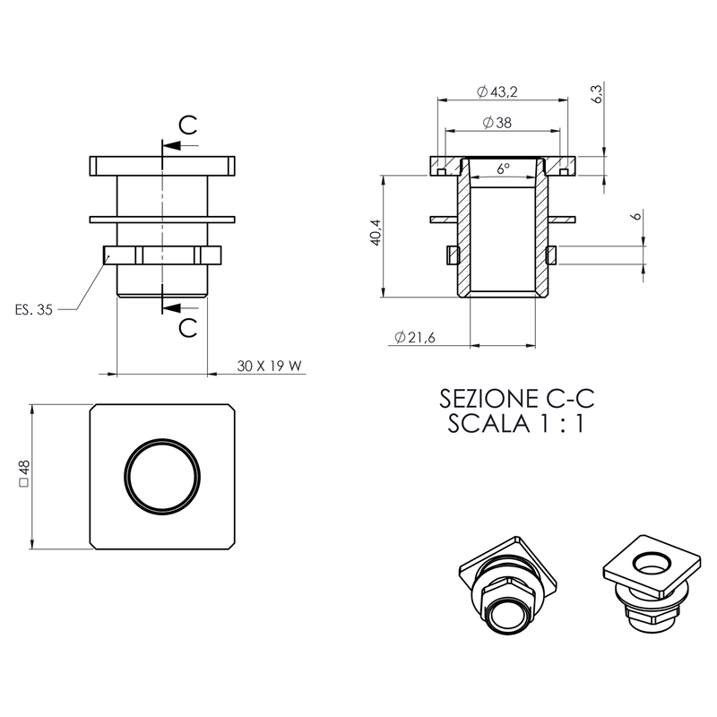 Sapho kádperemre szerelhető szögletes persely, króm 1205-42