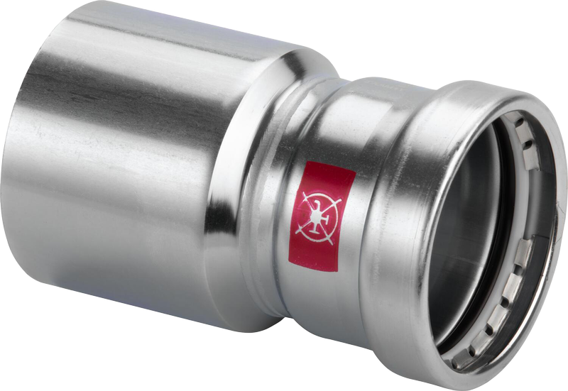 Áramlásoptimalizált présidomrendszer ötvözetlen, 1.0308 anyagszámú acélból készült présidomokkal. Kívül galvanikusan horganyzott (kék kromátozott). A présidomok a tömítőelem védelme érdekében hengeres csőbevezető toldattal vannak ellátva. A présidomok d64,0 mérettől nemesacél vágógyűrűvel rendelkeznek a kötés mechanikus terhelhetőségének biztosításához. A csővégek védelem céljából dugókkal vannak lezárva. A préselés a tömítőelem előtt és mögött is megtörténik (kettős préselés). Felszállóvezetékek és szinti leágazások vakolat elé és alá történő szereléséhez alkalmas.