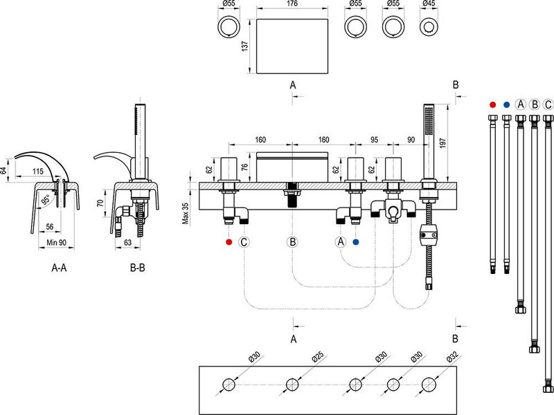 Kartus (átmérő, anyag): 35 mm, kerámiaVáltozat: Készlet. Kádperemre szerelhető kádcsaptelep - 3,4 vagy 5 nyílású