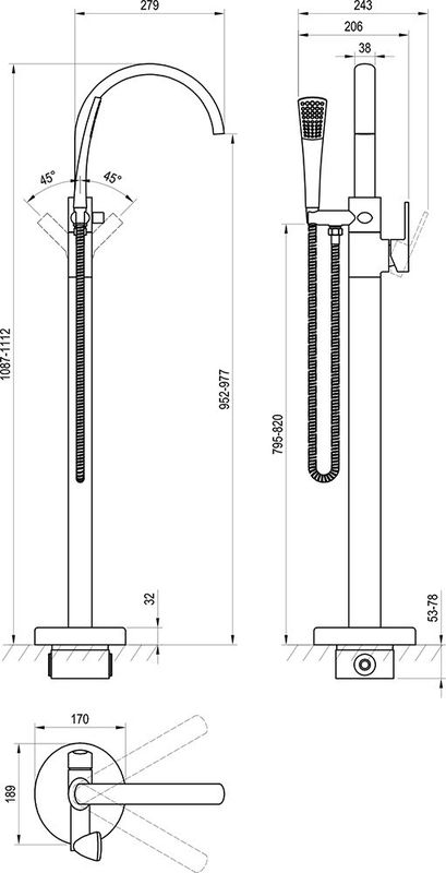 Ravak Padlón álló kádcsaptelep, íves FM 080.00