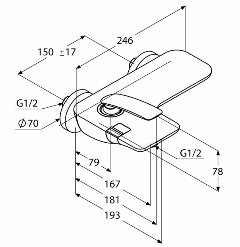 KLUDI-BALANCE kádtöltő- és zuhanycsap teli fogantyúval, falra szerelhető kivitel