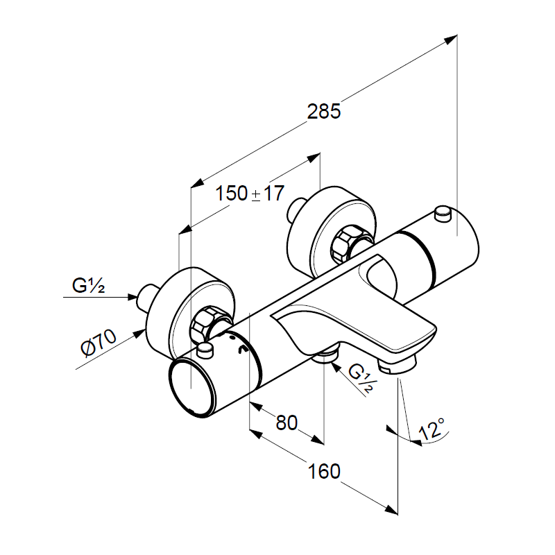 Kludi Objekta fali, termosztátos kádtöltő- és zuhanycsap, zuhanyszett nélkül